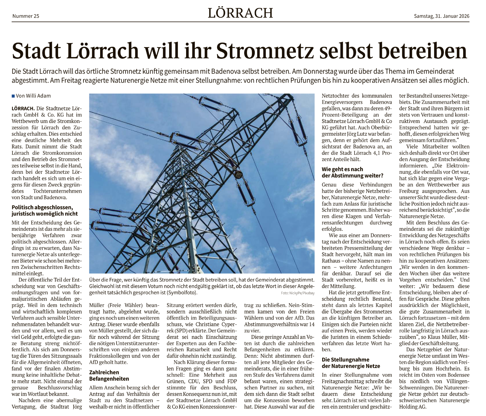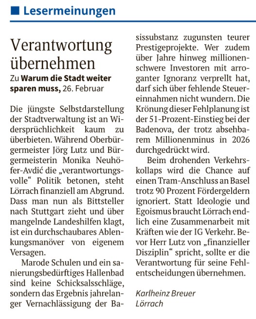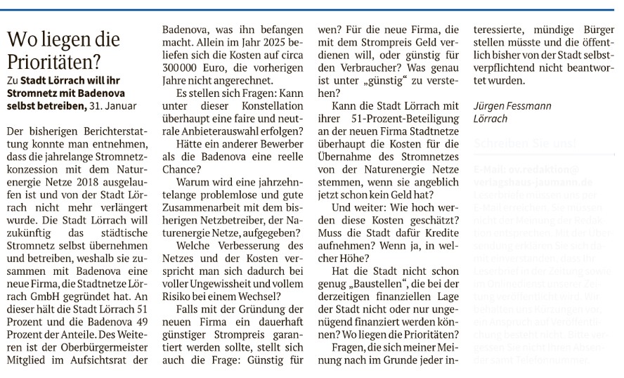 DO/OV v. 27.02.2026 Jürgem Fessmann: "Stadt Lörrach will Stromnetz ... selbst betreiben": Wo liegen die Prioritäten?