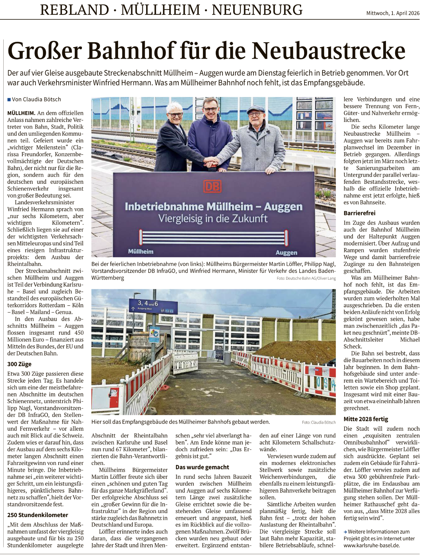Die Oberbadische 02.03.2026: Eine provisorische S-Bahn-Station wird es nicht geben: Bus soll S-Bahn-Ausbau überbrücken