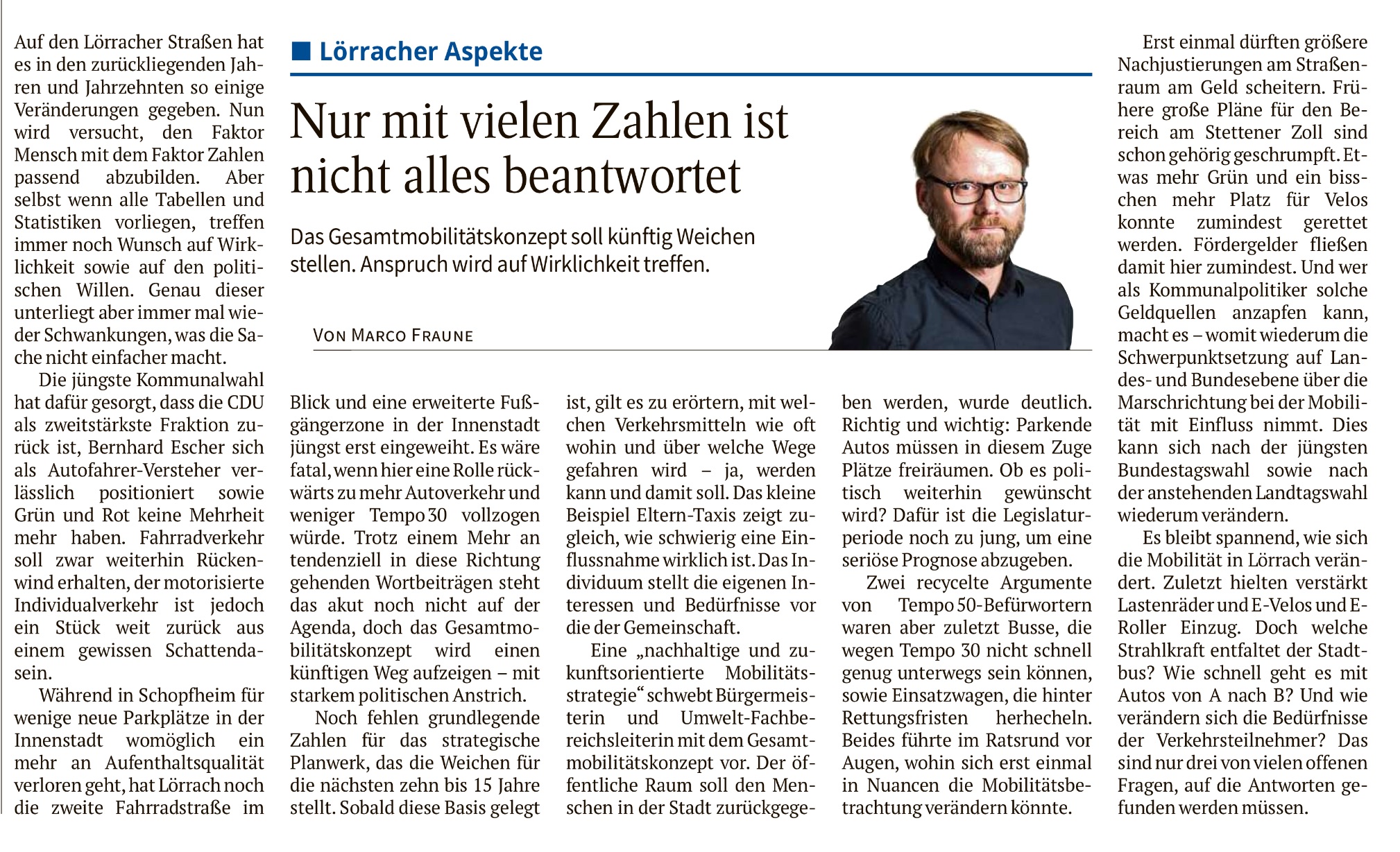 Die Oberbadische 02.04.2022: Lörracher Aspekte von Marco Fraune: Konsequenzen einer Tram