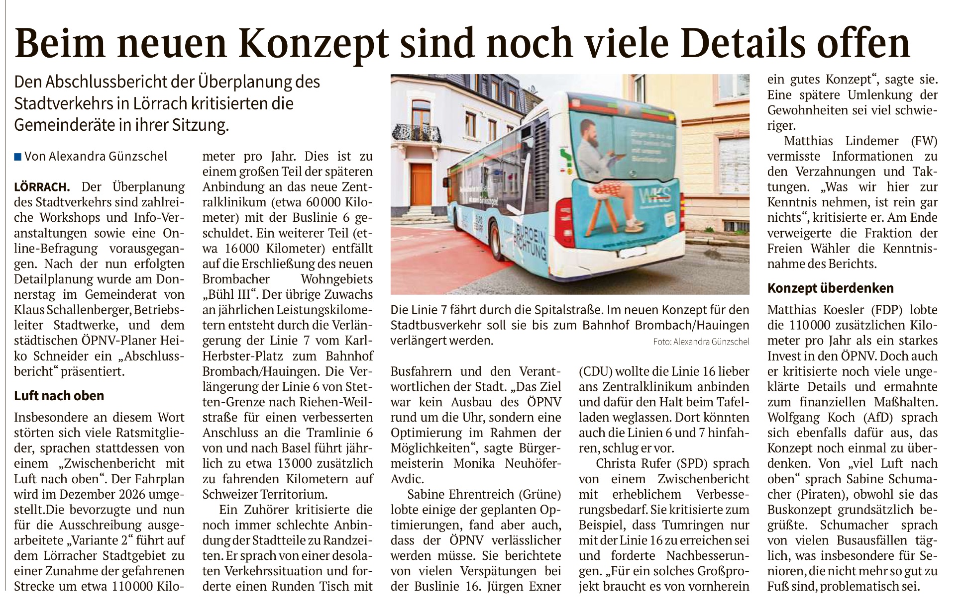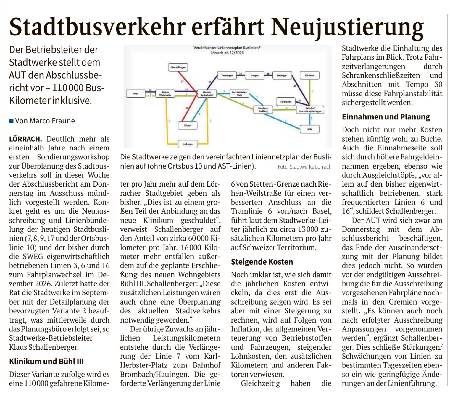 Die Oberbadische 26.09.2024: Stadtbuskonzept Lörrach: Für einen besseren Busverkehr
