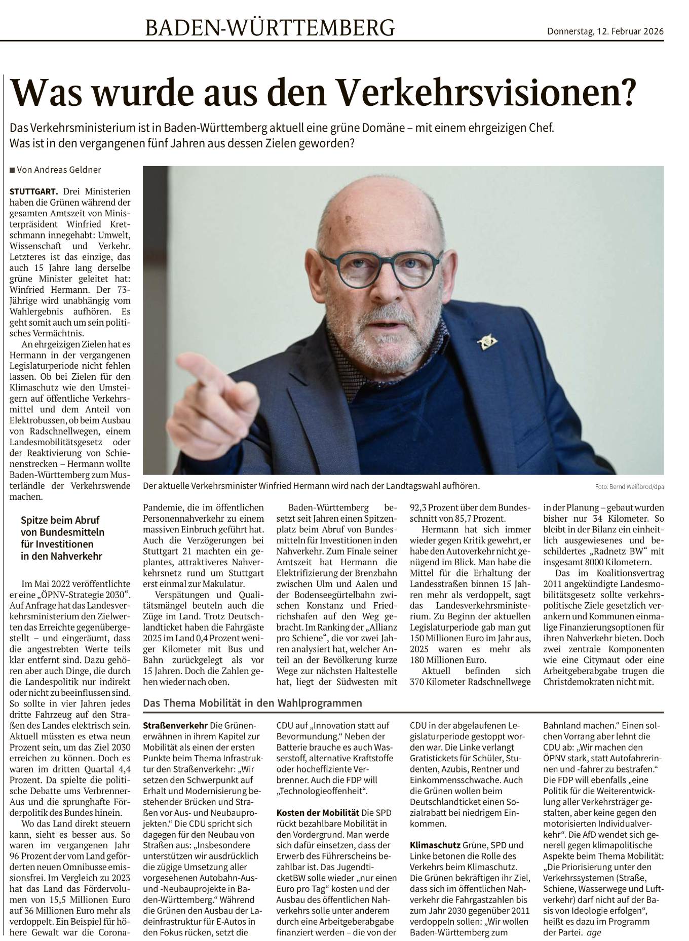 Die Oberbadische 12.02.2026: Verkehrsministerium in Baden-Württemberg: Was wurde aus den Verkehrsvisionen?