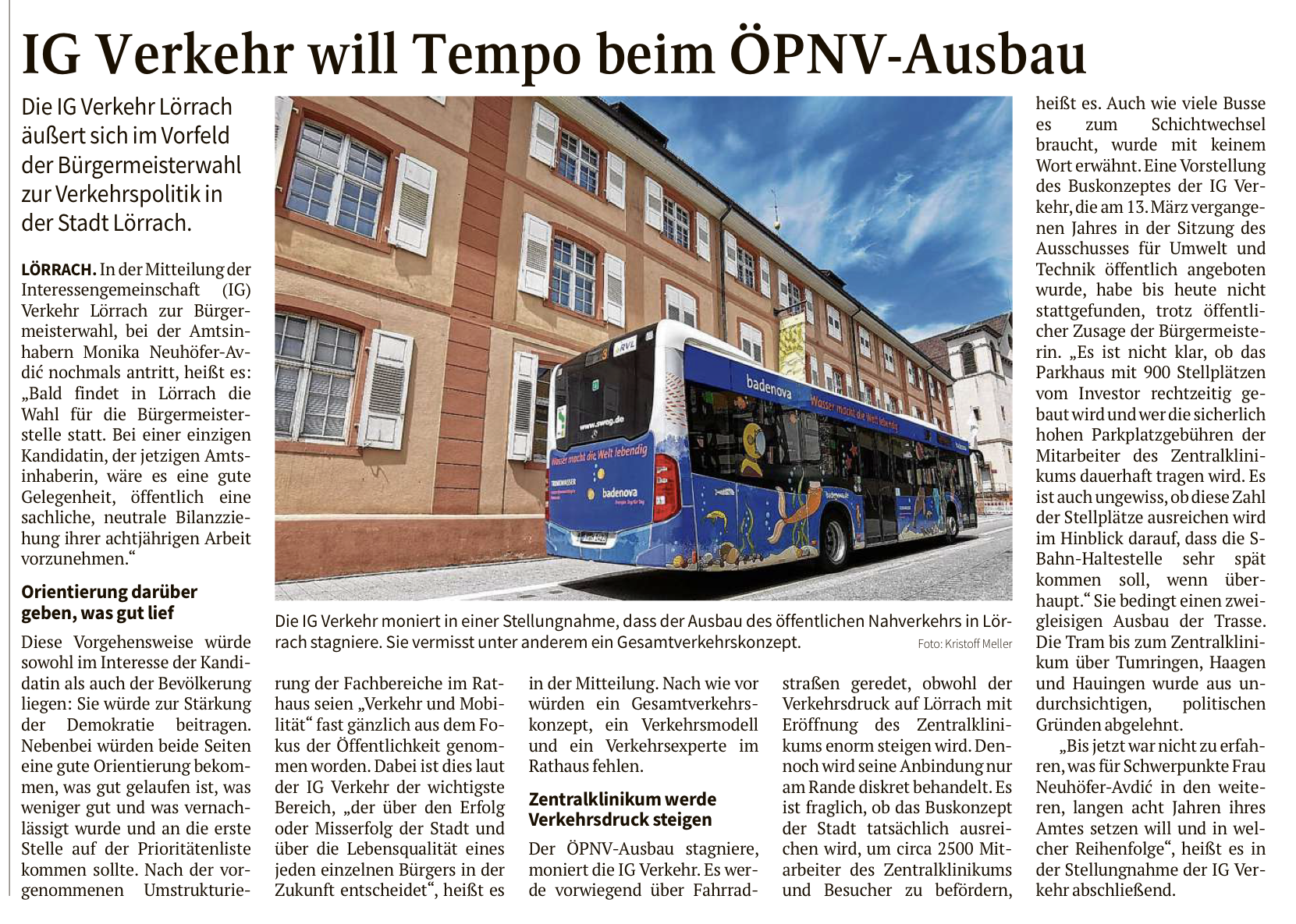 Die Oberbadische 21.02.2022: Ruf nach integriertem Mobilitätskonzept: Im Stadtbusverkehr läuft so manches noch nicht rund