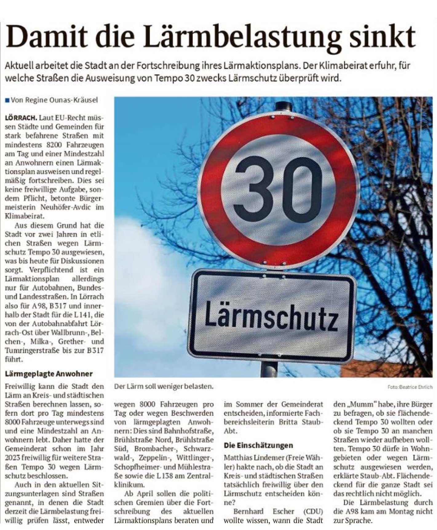 Die Oberbadische 13.03.2025: Fortschreibung des Lärmaktionsplans: Damit die Lärmbelastung sinkt