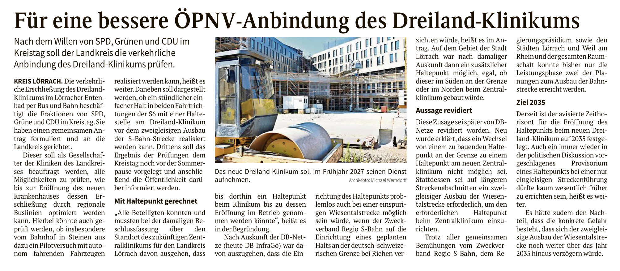 Die Oberbadische 20.03.2026: Landkreis soll verkehrliche Anbindung prüfen: Bessere ÖPNV-Anbindung des Dreiland-Klinikums