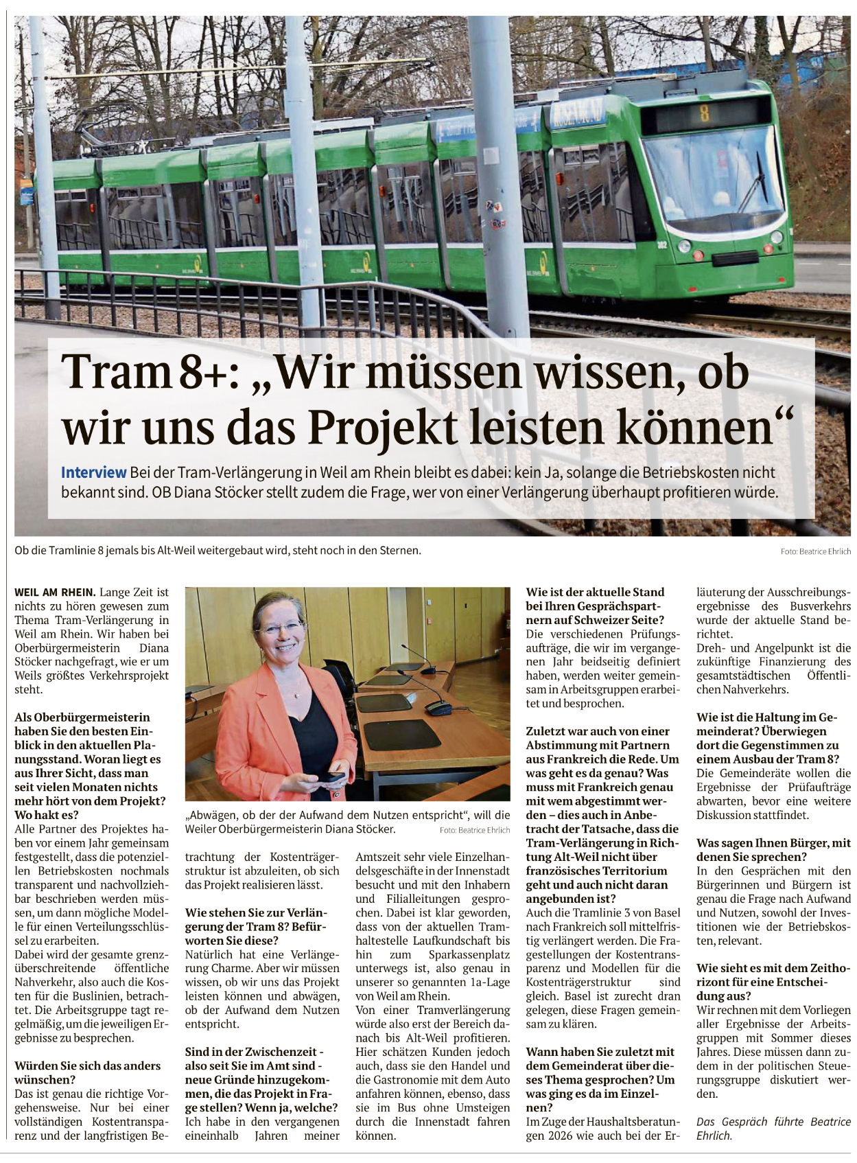 Die Oberbadische 24.03.2026: Verlängerung Tram 8 Weil: "Wir müssen wissen, ob wir uns das Projekt leisten können"
