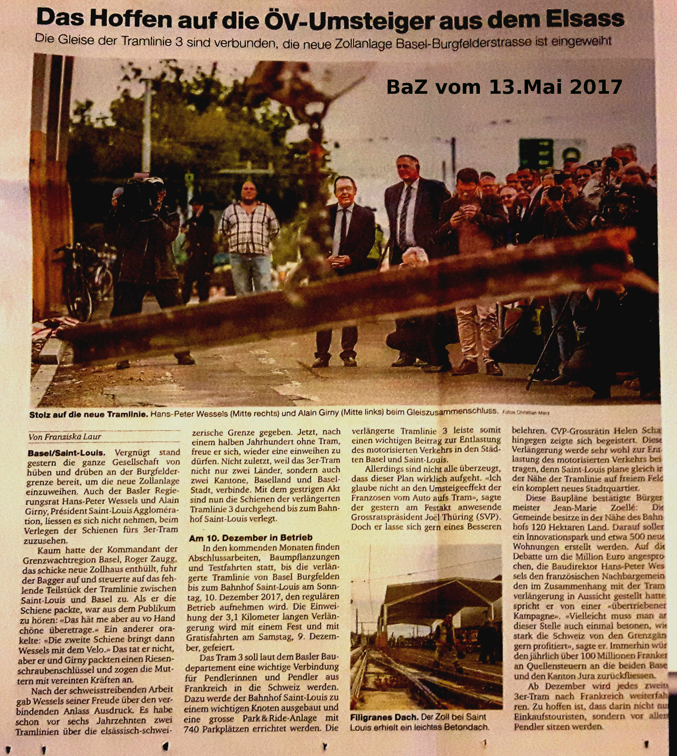 12.5.2017, IGVL Bericht Schienenzusammenschluss: Tramlinie 3 vom 12.Mai 2017, Basel - St.-Louis am Burgfelder Zoll (pdf=2,8MB)