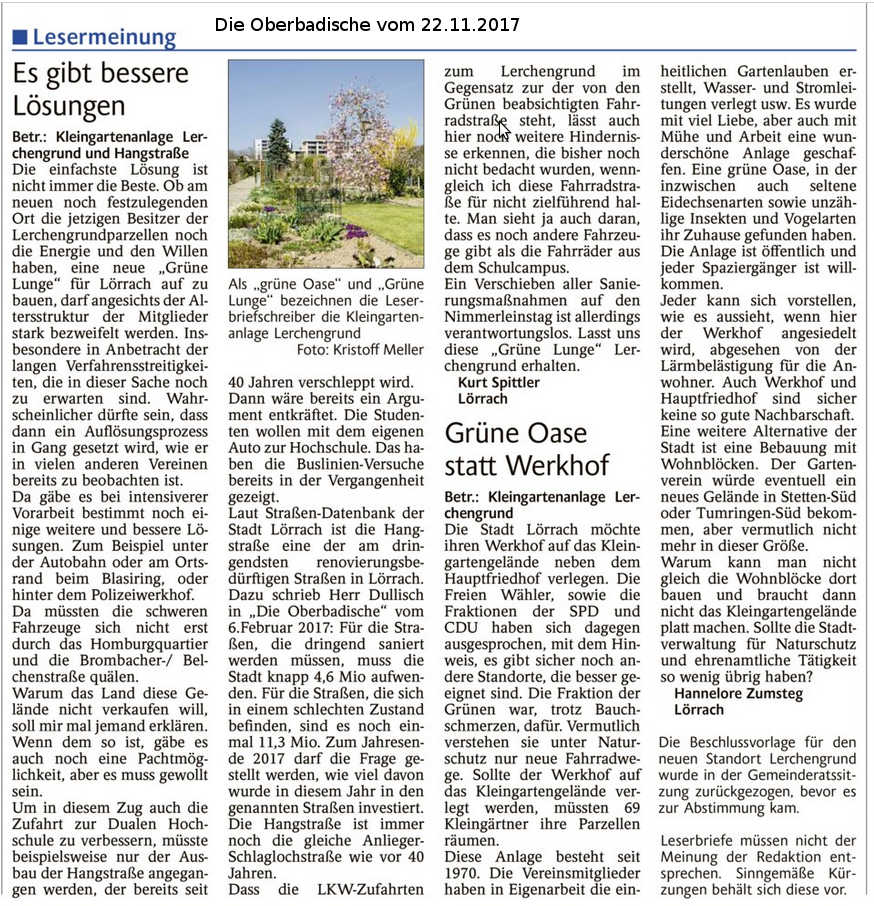 Die Oberbadische 30.11.2017: Kritik am Beschluß des Gemeinderates.