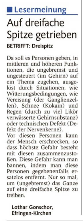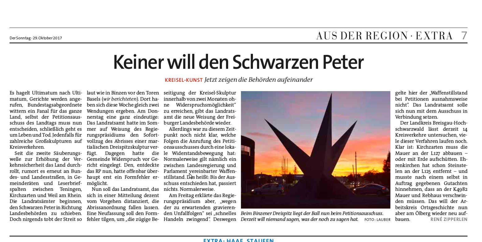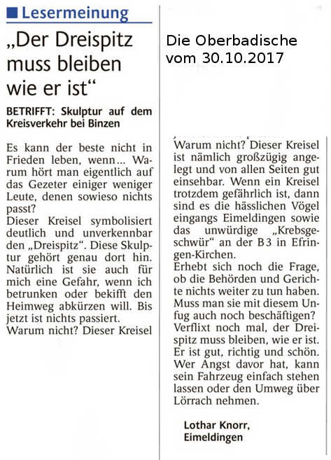 DO/OV v. 30.11.2017, L. Gonschor : Zum Dreispitz-Kreisel: Auf dreifache Spitze getrieben!
