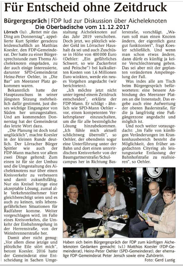 Die Oberbadische 11.12.2017: Aicheleknoten: FDP für Entscheid ohne Zeitdruck.
