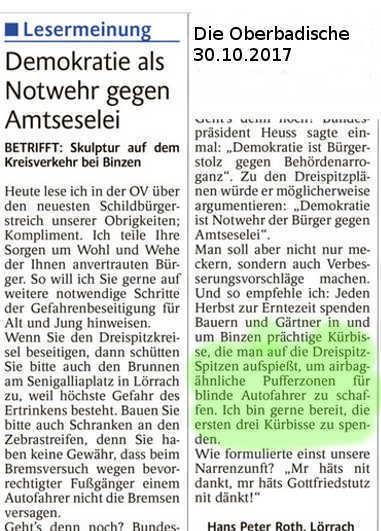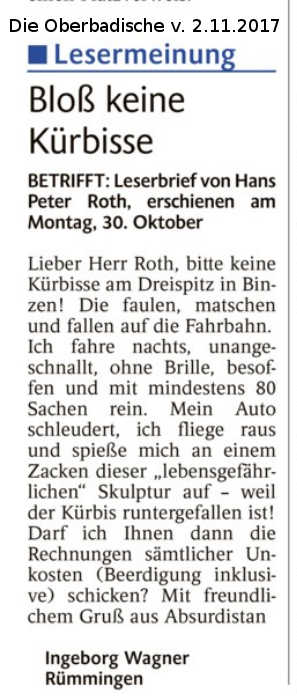 DO/OV v. 30.10.2017, Ingeborg Wagner: Zum Dreispitz-Kreisel: LB von Herrn Roth: Bloß keine Kürbisse !