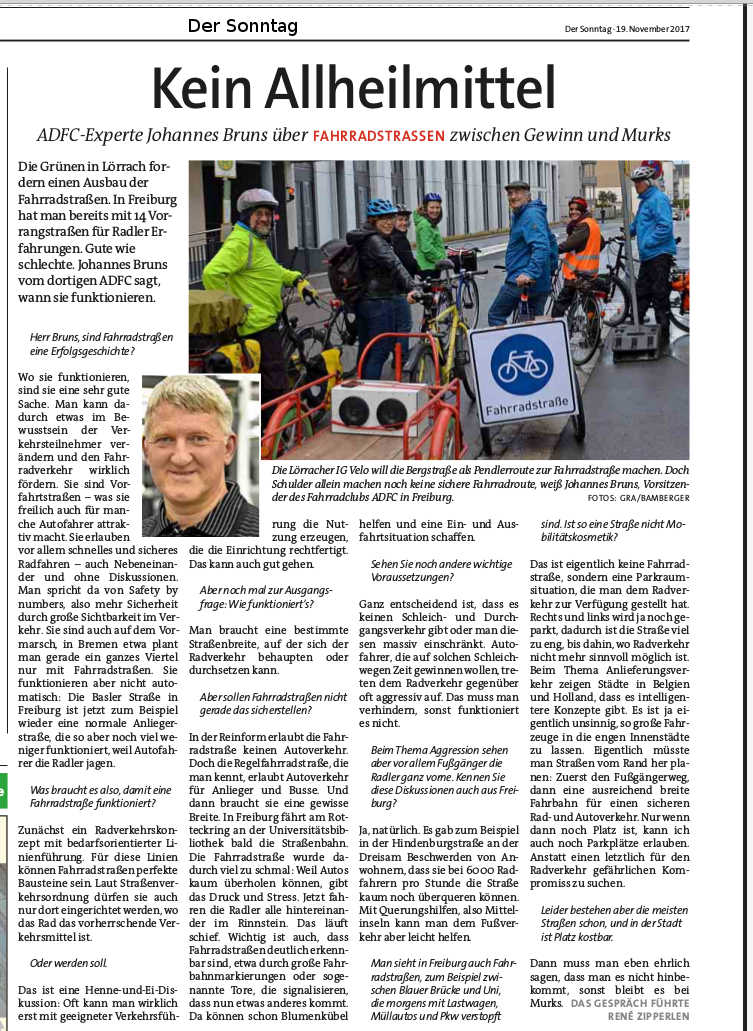 Die Oberbadische 11.12.2017: Kontroverse um die Fahrradstraße.