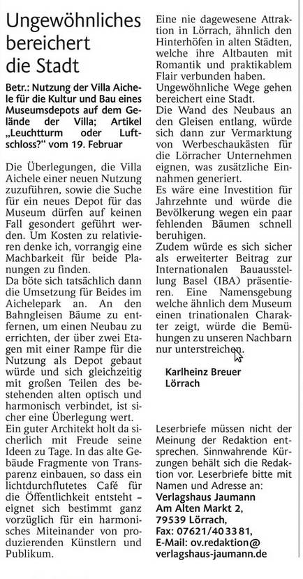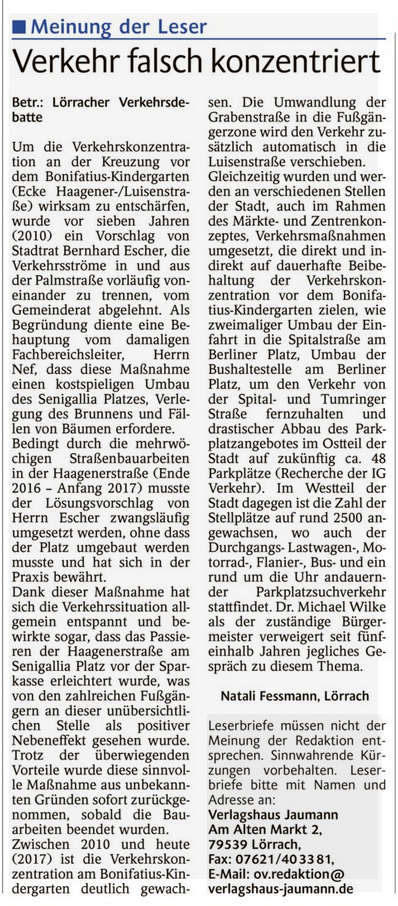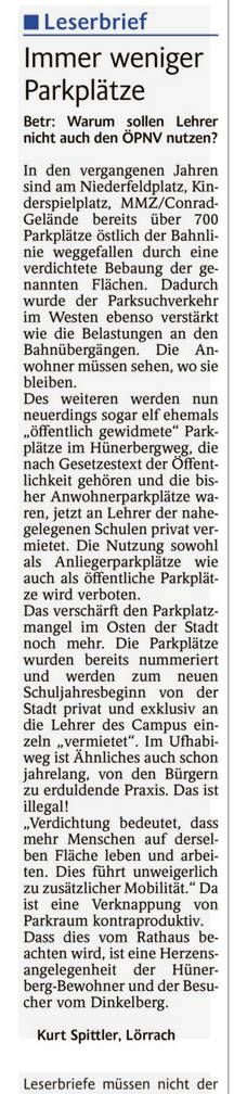 OV. v. 12.4.2017 N.Fessmann: Weniger Parkplätze im Osten von Lörrach.