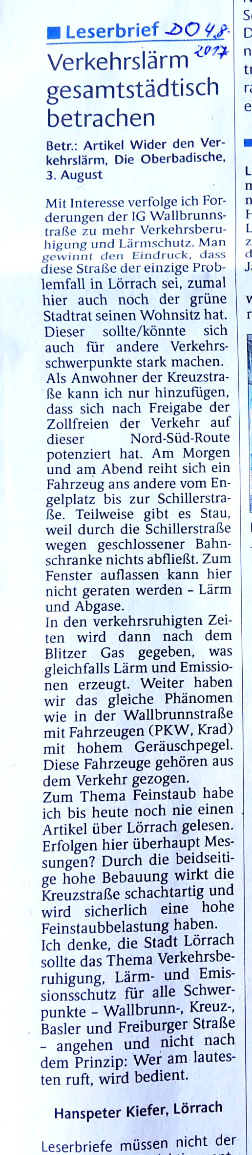 OV. v. 4.8.2017 HP.Kiefer: Verkehrslärm (Wallbrunnstrasse) gesamtstädtisch betrachten!