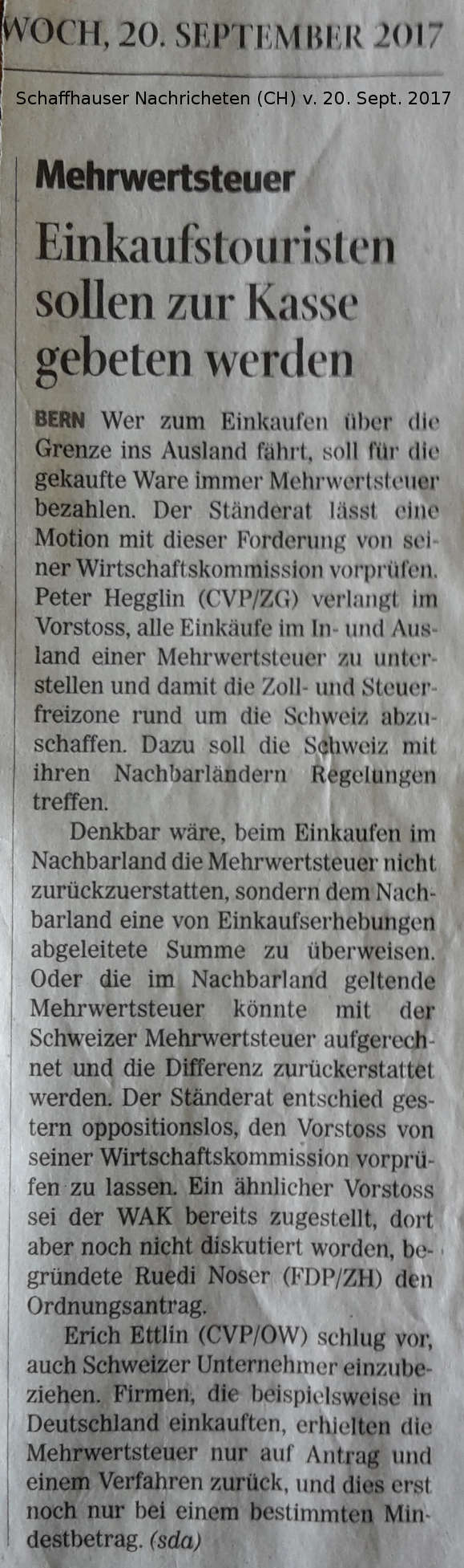 OV. v. 7.4.2017 Ralf Keller: "Auch Schweizer müssen zahlen..."!.Leserbrief dazu "...Wie ein Gast verhalten.