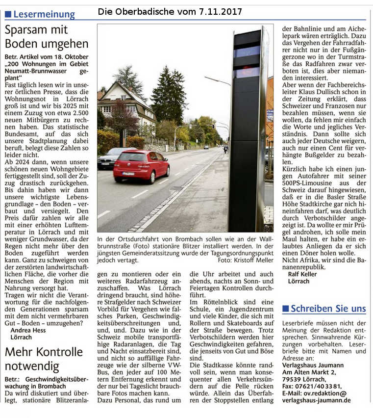 DO/OV v. 20.10.2017 K.Spittler: Über Sinn und Zweck der Blitzer in Brombach .