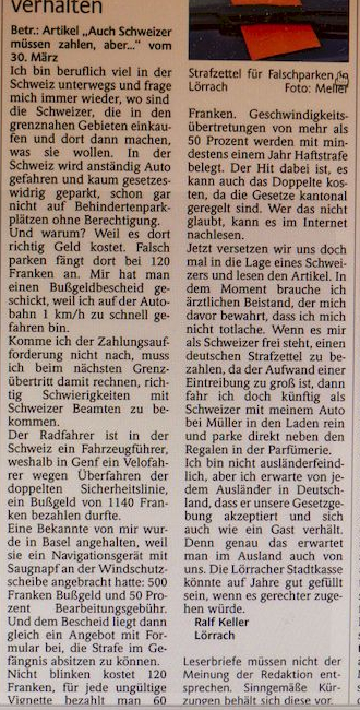 Die Oberbadische 30.3.2017: Bußgelder: Auch Schweizer müssen zahlen - aber....