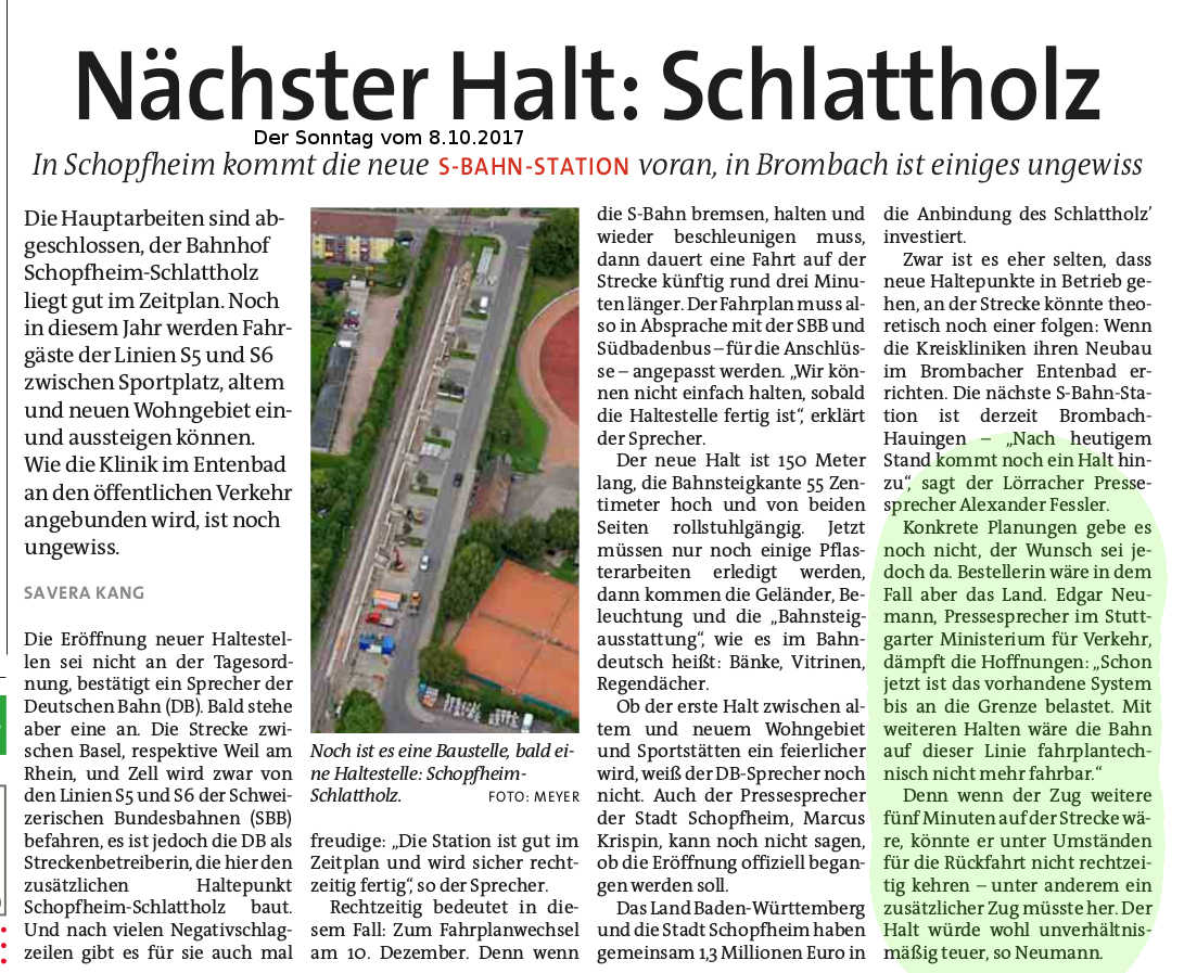 OV. v. 7.8.2017 KH Schlusche: Lörrachs Aorta bleibt die S-Bahn
