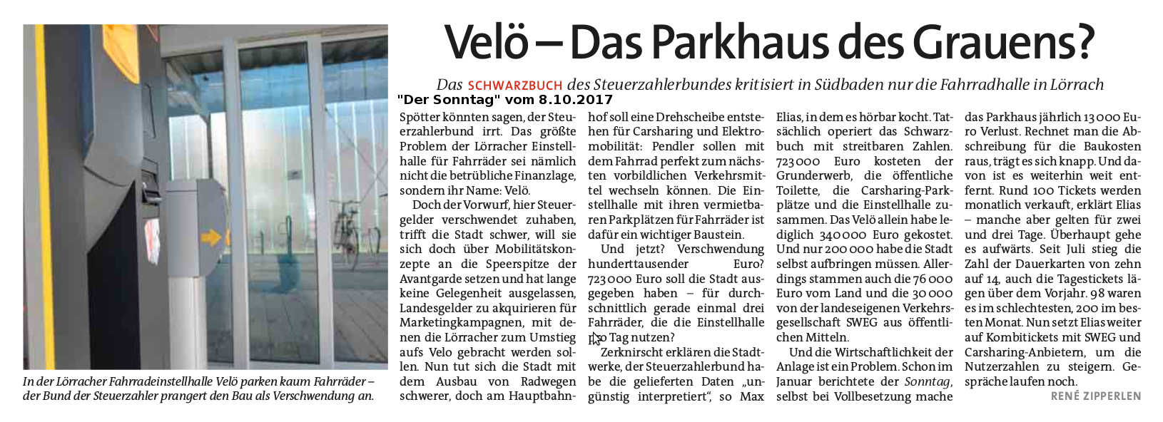 Die Oberbadische 29.4.2017: Parkhaus-Belegungszählung in Lörracher Parkhäusern. (Nach Ablehnung des zusätzl. Parkgeschoß MMZ).