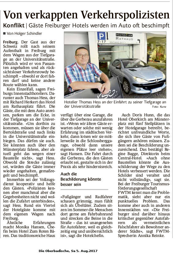 Die Oberbadische 15.4.2017: Zu traurig für die Glosse: Heftiger Streit um Parkplatz.