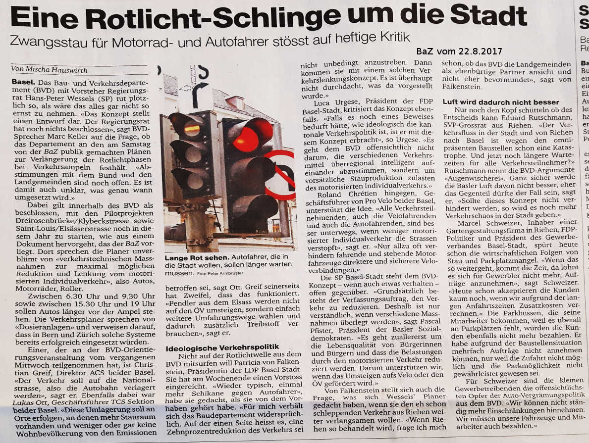 v. 12.8.2016 Basler Zeitung, Peter Schenk — bz